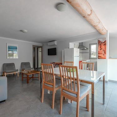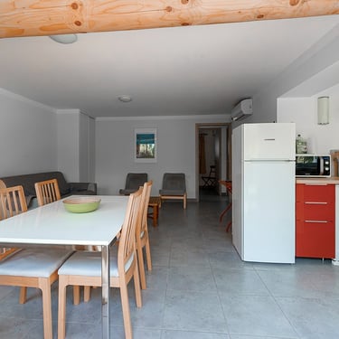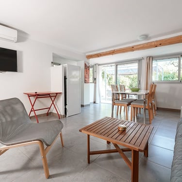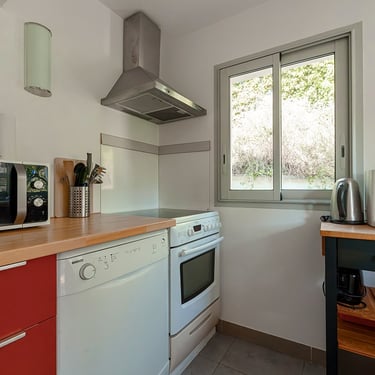 Cuisine entièrement équipée : plaques vitro-céramiques, four, frigo, congélateur, lave vaisselle.